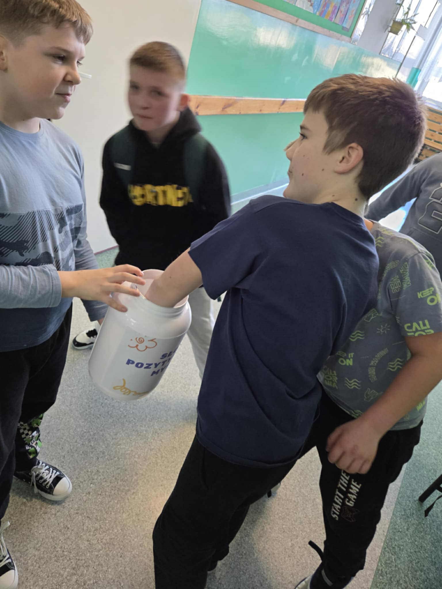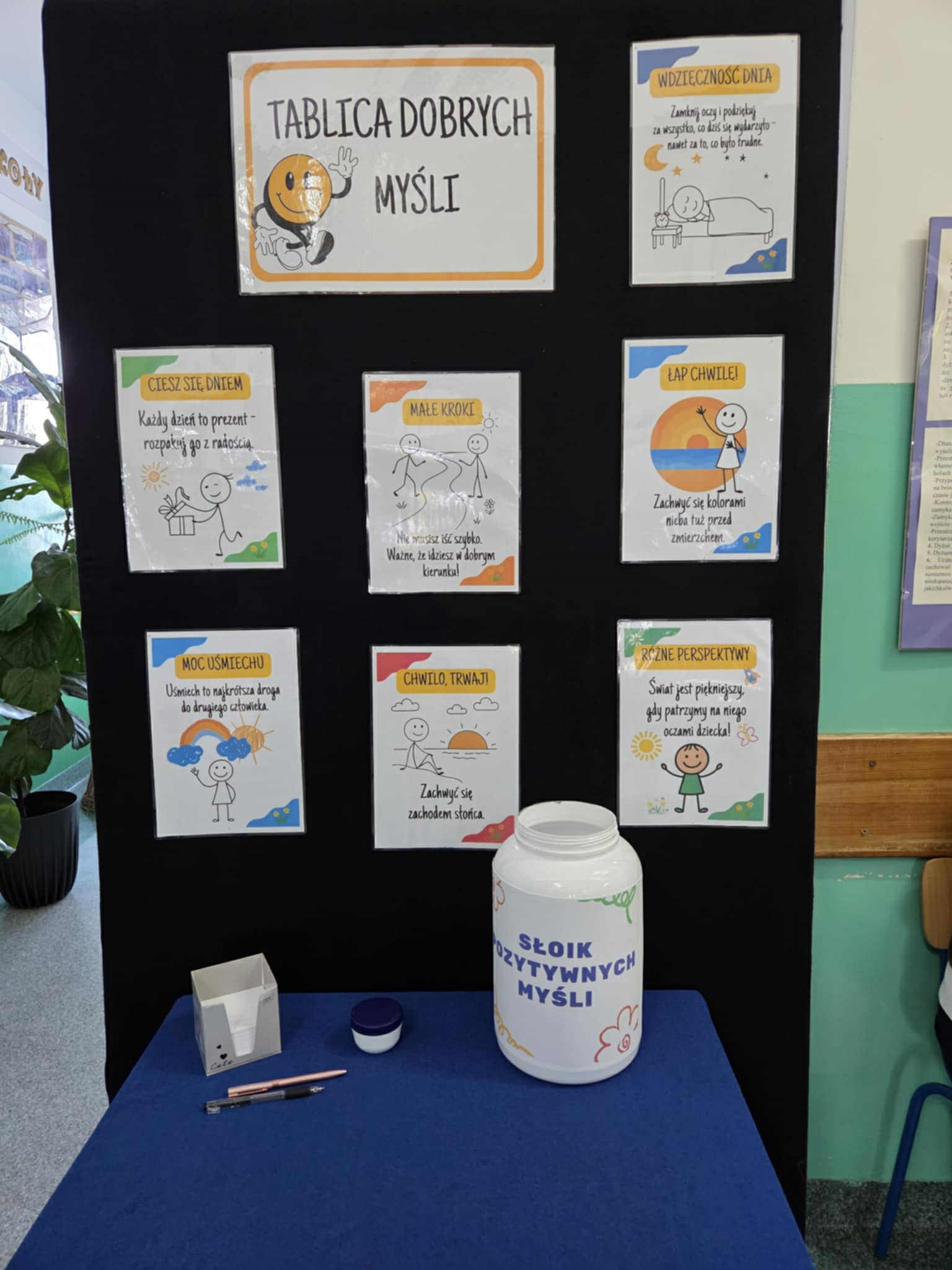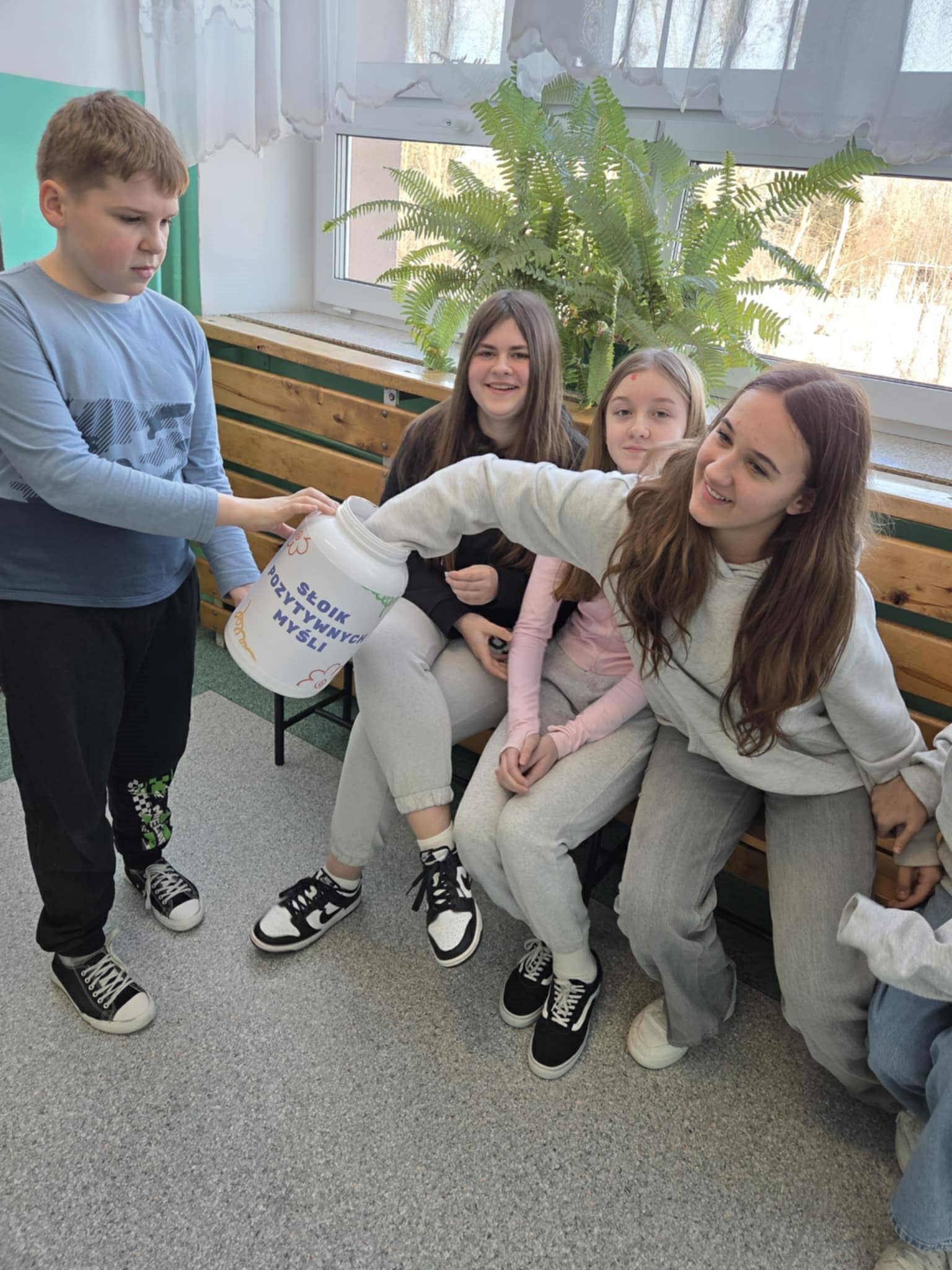 W naszej szkole uczniowie klasy V wraz z wychowawczynią przygotowali gazetkę tematyczną „Tablica dobrych myśli” oraz słoik dobrych myśli z kartami motywacyjnymi z dobrym słowem. Uczniowie podczas przerw rozdawali uczniom, nauczycielom oraz pracownikom bileciki z miłymi słowami.
